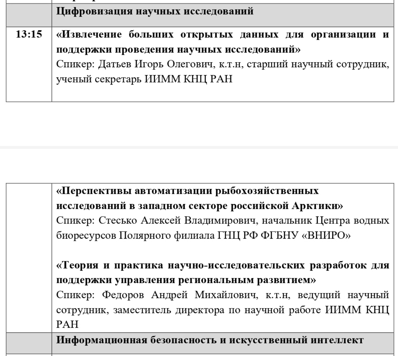Тематическое наполнение представленных ИИММ материалов по сути обеспечило плавный переход от секции «Цифровизация научных исследований» к следующей секции «Информационная безопасность и искусственный интеллект». Актуальность, остроту и важность вопросов именно этого финального раздела Конференции отдельно подчеркнула в своем приветственном слове Директор Мурманского филиала ПАО «Ростелеком» Шаньгина Ольга Владимировна. Именно проблематикой вопросов интеллектуальной обработки данных с помощью технологий искусственного интеллекта занимаются ученые ИИММ, реализуя на фундаментальном и прикладном уровне ИТ-решения, в т.ч. (а иногда и в первую очередь) ориентируясь на их применение в рамках АЗРФ, в частности для решения реальных и потенциальных бизнес-задач предприятий и организаций Мурманской области.