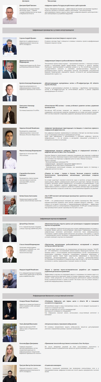- Мурманский филиал ПАО «Ростелеком» (представили свою новую ИИ-платформу Нейрошлюз)
